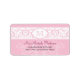 A pretty return address label that all girly. An ornate white band holds a medallion containing a monogram. The damask figure is repeated as a watermark against pastel pink on the bottom. Just add the name and address to make a unique personal label. Available in alternate colors with matching products.