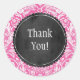 Pink Damask Pattern Flower Chalkboard Customizable Classic Round Sticker