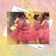 A fine art postcard, The Pink Dancers, before the Ballet (1884), by the French impressionist artist Edgar Degas (1834-1917). Ballerinas in pink tutus standing in the wings on the stage, a figurative in pastel. Ballerinas were a favorite of Degas to draw.