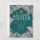 Pink & Dark Cyan Tropical Palm Leaves Sweet 16 Invitation