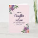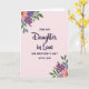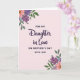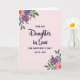 This card features a soft, pale pink background that feels gentle and welcoming, with a centered message arranged to draw the eye like a quiet embrace. Dark, near-black lettering at the top and bottom uses a simple, modern style, while “Daughter in Law” appears larger in the middle in a flowing, cursive look that adds a tender, affectionate tone ❤️. The contrast in letter sizes creates a clear focal point, as if the central words are being held close. In the top-left corner, a small cluster of stylized flowers leans inward, suggesting a caring gesture toward the message. The blossoms mix light pinks with deeper purples and soft lavender tones, paired with fresh green leaves that add a calm, garden-like freshness 🌼. A matching floral arrangement sits in the bottom-right corner, balancing the layout and framing the text without crowding it. The flowers are drawn with soft outlines and gentle shading, with delicate stems and petals that stand out against the pale pink backdrop.