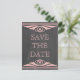 Elegant and chic Deco Chalkboard Save the Date Postcard featuring a trendy chalkboard texture look background and a pair of light pink art deco swirl borders. This lovely save the date postcard is perfect for announcing your art deco 1920's themed wedding. Easy to customize, simply add your wedding details. Click "Customize It" to find additional personalization options.