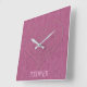 Discover a very original square clock with a beautiful girly pink denim fabric, overlapped with 3 nested hearts of decreasing size in the same fabric with nice diagonal stitching. The hearts have a very cool 3D effect and the denim jeans texture is really awesome. We added a customizable name at the bottom of the clock, written in a modern stylish light pink typeface. Please, replace the default name with yours (or with your monogram initials), or feel free to delete it.