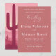 This Desert Rose cactus wedding invitation features a romantic pink desert sunset landscape with cactus silhouettes and soft desert mountains. The warm dusty rose color palette paired with elegant calligraphy typography creates a modern boho aesthetic perfect for desert and southwestern weddings.