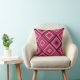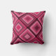 Throw pillow with large pink diamond pattern. Bright bold pattern that includes black, white and various shades of pink.