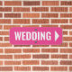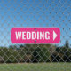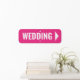 Pink directional wedding sign with arrow. Bold template with modern typography and arrow pointing right or left. Attach to outdoor fence, pole, gate, wall etc. Custom signage for bride and groom getting married. Chic road sign for wedding venue, bridal party, reception, parking, restrooms, garden, court yard and more. Help guests, visitors, friends and family find their way with custom traffic signs. Customizable colors.