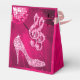 Personalized, elegant custom party favor box for girls/women with glitz and glamour. Beautiful pink and white party favor boxes for women and girls with a funky retro disco mirror ball, glamorous printed image rhinestone glitter, sequins, jewels sparkle high heel stiletto shoes, and glittery musical notes / music notes with sparkles on a vibrant pink lights and sparkles background. Chic, classy, cute, girly, modern party favor boxes in trendy, fashionable colors. These are groovy, stylish, sophisticated, pretty favor boxes . If you need any assistance customizing your product please contact me through my store and I will be happy to help.