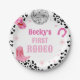 Pink disco first rodeo western Wild West cowgirl first birthday paper plate.
