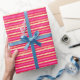 This modern pinky colorful wrapping paper features a stripes seamless pattern containing pink, red, orange and peach colors.
