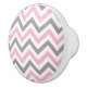 Pink, Dk Gray Wht Large Chevron ZigZag Pattern Ceramic Knob