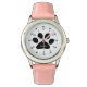 A personalized cute dog paw kid's watch with a pink background. Please see photos. You will be able to easily "personalize this template" with the child's name across the dog paw.