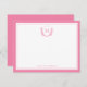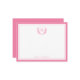 Pink Double Border Floral Crest Classic Monogram Note Card