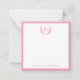 Pink Double Border Floral Crest Monogram Sqaure Note Card