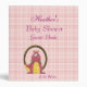 Adorable pink dragon on a pink plaid background, perfect for a baby shower. Personalize with name and date!