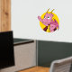 Wall Decal with illustration of head of a cute little pink flying dragon, in yellow circle, cute fantasy / fairy-tale design for kids by Maxi Harmony