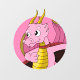 Wall Decal with illustration of head of a cute little pink flying dragon, in pink circle, cute fantasy / fairy-tale design for kids by Maxi Harmony