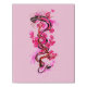 decorative artwork of a pink colored dragon with pink blossoms growing from a tree branch on a pink faux canvas