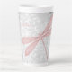 Enjoy your latte or morning coffee with a Pink Dragonfly Personalized Latte Mug. Mug design features a colorful dragonfly, a soft white leafy vine against a light gray grunge damask background with an area to personalize with your name. Additional gift items available with this design as well as a variety of colors.