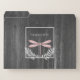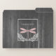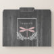 Store your important files and papers with a set of Pink Dragonfly Rustic Personalized File Folders. Folder design features a vibrant dragonfly adorned with delicate foliage against a dark gray rustic wooden background. Additional gift items available with this design as well as a variety of colors.