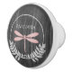 Add an elegant touch to cabinetry or furniture with a Pink Dragonfly Rustic Personalized Ceramic Pull. Pull design features a vibrant dragonfly adorned with delicate foliage against a dark gray rustic wooden background. Additional gift items available with this design as well as a variety of colors.