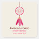 An address sticker featuring an illustration of a pink dreamcatcher with pink feathers. Personalize with your name and addrses.