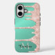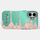 Teal and pink dripping glitter mobile phone case can be personalized with your name and monogram.