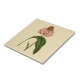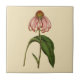 Subtle color in a pink botanical Echinacea with dusty green foliage on a tan background ceramic tile.