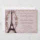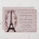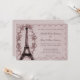 Invite guests to your upcoming wedding with a Pink Eiffel Tower Wedding Invitation. Invitation design features the Eiffel Tower adorned with a fancy flourish frame against a grunge background and postal stamp embellishment. Additional wedding stationery available with this design as well.
