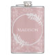 Enjoy your favorite alcoholic beverages anytime with a Pink Elegant Damask Vinyl Wrapped Flask. Flask design features an elegant damask background and space to add your name adorned with delicate foliage. Additional gift items available with this design as well.