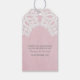 Simple and sophisticated Elegant Lace Wedding Gift Tags featuring a white lace doily motif on a light pink faux vintage paper background. These classic and stylish tags are perfect for a rustic wedding. Easy to customize with your wedding details. Click "Customize It" to find more personalization options.