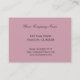 Pink Elegant Pattern design business cards. Personalize with your own name address and information on both the front and the back. The back is blank so you can add your own logo or photo. Customize by changing font type and font color. Simple contemporary business card for corporate business use for your company or your personal card. Discounts are available when purchased in bulk. This style is also available in other colors.