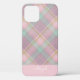 Elegant pink plaid with first name in an elegant script iPhone 12 Case.