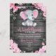 Pink Elephant Baby Shower invitation, rustic Invitation