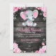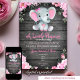 Pink Elephant Baby Shower invitation, rustic Invitation