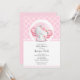 Girl baby shower invitations with an adorable baby elephant wearing a headband of flowers on a pink and white diamond pattern background. Also available for a boy or unisex in our store. MATCHING items in our store.