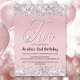 Pink Elephant Glitter 2nd Birthday Party Invitation