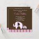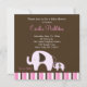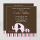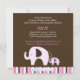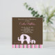 Sweet Mommy and Baby Pink Dottie Elephant stripe design with a dark chocolate background and trendy stripe bottom. This invitation is full-color on both the front and back, which leaves plenty of room to write! This is a super cute, one-of-a-kind elephant theme invitation that Mom's will love to hand out and guests will love to receive! Perfect for any baby girl baby shower!