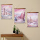 Decorate your house for the winter season with a beautiful set of three hanging panels each with a coordinating scene of a pink fairytale winter castle wonderland. Perfect hangings for a kids room