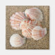 A pile of pink fan shells rest on the sand. Their color, ridges and scalloped edges provide texture and interest. They are just what you are looking for when you collect shells at the beach!