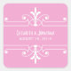 Simple and elegant Fancy Ornamental Wedding Stickers in pink and white featuring a sophisticated art deco style ornamental flourish border. Easy to customize, simply add your wedding details in the text fields provided. Click "Customize It" to find more personalization options.