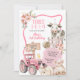 Pink Farm 3rd Birthday Invitation, Three I E I O Birthday Invitation, Editable Pink Floral Tractor Barnyard Animals Kids Birthday
