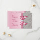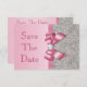 Personalized wedding Save The Date cards. Elegant custom silver and pink colors double sided flat save the dates with a beautiful sparkly printed glitter sequins pattern, cute shiny printed vector bows and ribbons and pretty, stylish printed image diamonds bling jewels and pink text on a pink gradient background. These classy glamorous, fashionable pink and silver formal note cards are decorated on both sides and printed on your choice of invitation paper. Beautiful, chic, trendy, modern double sided cards with girly glitz and glamour. Please note: All invites on Zazzle have flat printed images. I have matching products for weddings in my store. Text, font and colors of font are all personalizable / personalisable to meet your needs. If you need assistance customizing your product please contact me through my store. I will be happy to help.PLEASE NOTE:- All invitations on Zazzle have flat printed images.