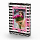 A splash of faux pink foil on black and white stripes sprinkled with gold dots pattern highlights your favorite photo on this acrylic photo block. Great as a gift or to display your favorite photo in your own home.