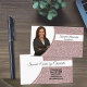 The design feature faux pink glitter that sets off the background of this business card design with a photo placeholder on the left and template name and title on the right. The back includes a coordinated design and colors with text fields for the business name and details. Replace the placeholder photo with your vertical format photograph. Fill in the template fields or edit using the design tool to select a font style, size, and color you like. The placeholder photo is courtesy pixabay.com.