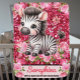 A delightful girl's baby blanket featuring a charming combination of jungle safari animals and delicate roses, personalized with a custom name, creates a whimsical and unique touch. Imagine a soft, pink faux glitter adorned with cute illustrations of a sweet baby zebra, with delicate roses in various shades of pink, adding a touch of sweetness and femininity to the design.