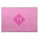 Pink faux linen texture with a monogram cloth placemat