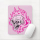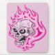 Funny skull surrounded by pink flames is a colorful skull that looks great on dark apparel and gifts.
