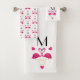 Pink Flamingo and Hearts Pattern Bath Towel Set