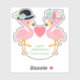 Here's a cute way to wish a couple a Happy Anniversary. This sticker shows two pink flamingos, one in a derby hat and one with a flower head dress, facing each other with a pink heart between them. At the bottom is your custom text in pastel green. Cute for gift decoration, or to use at an anniversary party reception.