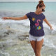 Go from the beach to the boardwalk in this cute Flamingo Cover Up Dress. Customize the text to personalize if desired.